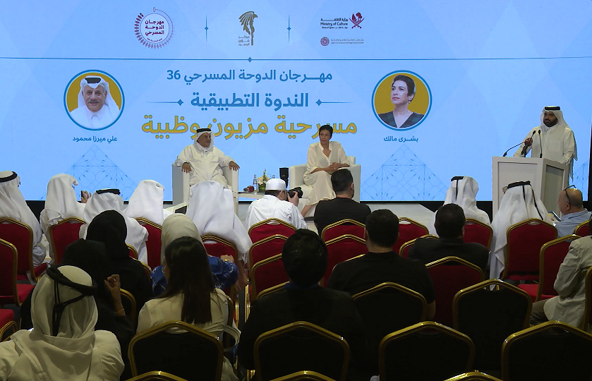 مشاهد من مسرحية صانع الدمى لفرقه الدوحة المسرحية وكلمة من المخرج فالح فايز في مهرجان الدوحه المسرحي 34 سنة 34.